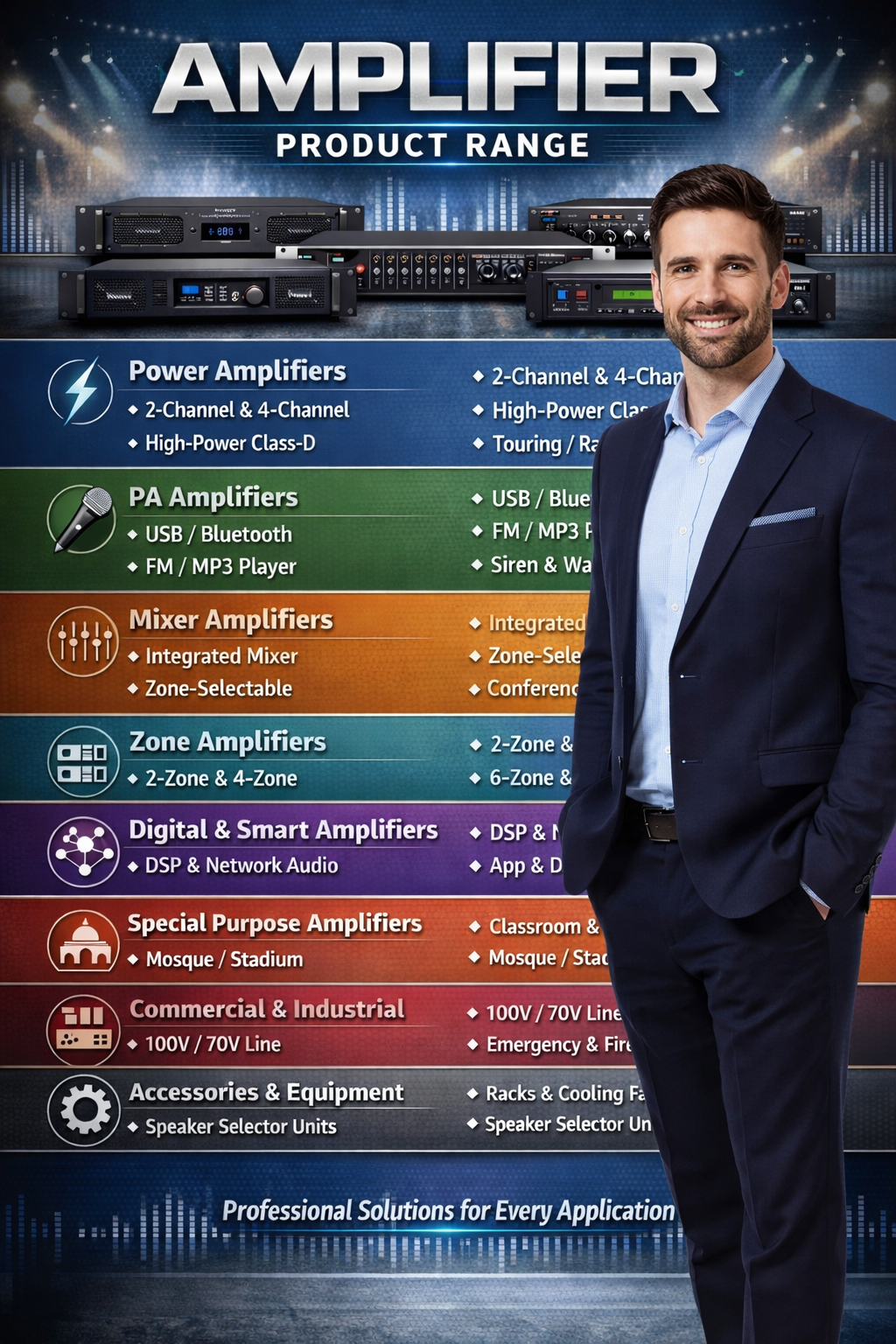 Our amplifier enterprise and professional audio solutions also include