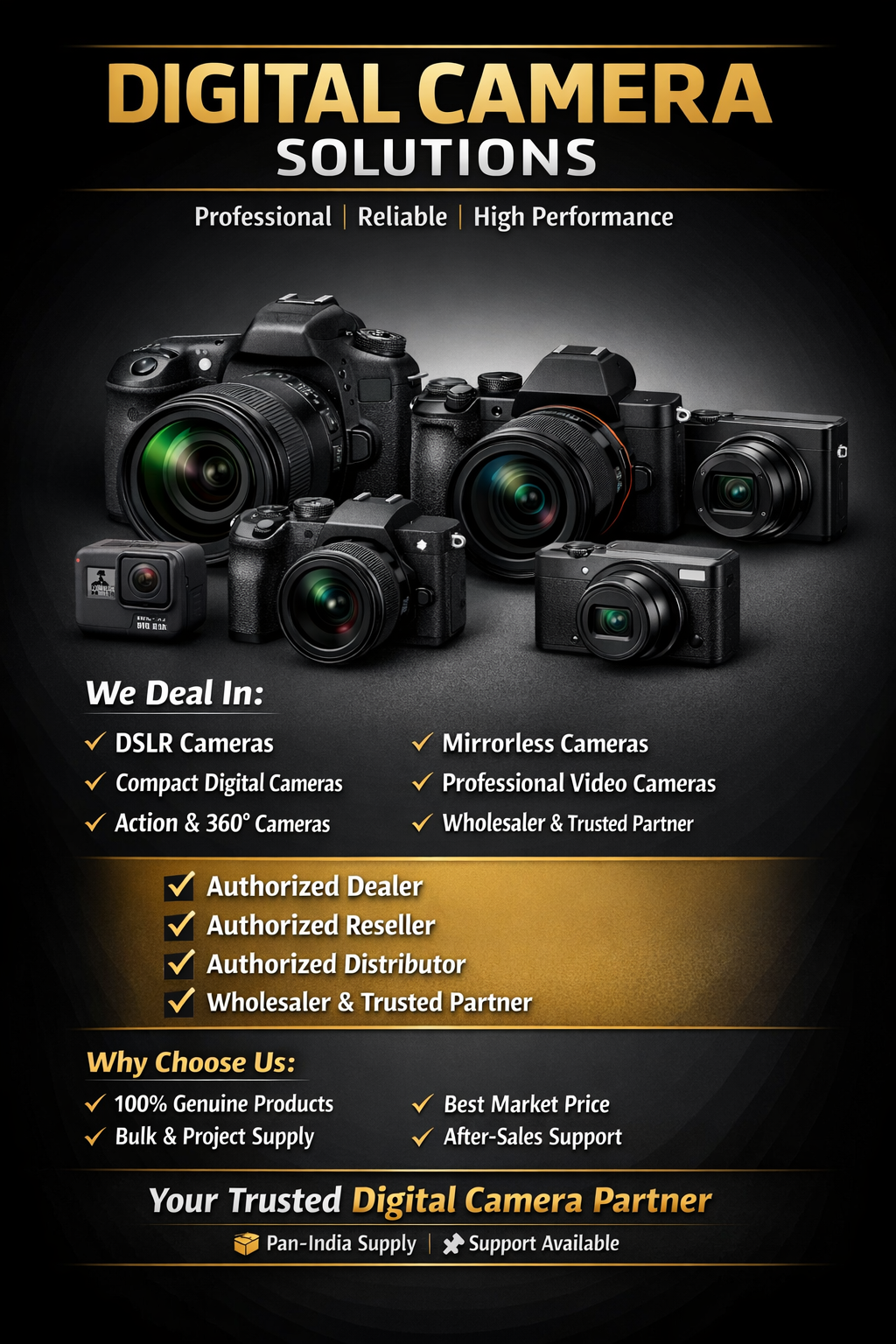 Sunlite Systems Pvt Ltd is a Digital Camera Authorized Partner, Digital Camera Authorized Distributor, Digital Camera Authorized Dealer, Digital Camera Reseller, Digital Camera Wholesaler, Digital Camera Supplier and GeM Registered Digital Camera Vendor in India, supplying a complete portfolio of Digital Camera solutions, professional Digital Camera systems, commercial Digital Camera solutions and enterprise Digital Camera infrastructure across Pan India for Corporate, PSU, GeM, Government, Defence, Education and Smart City projects.