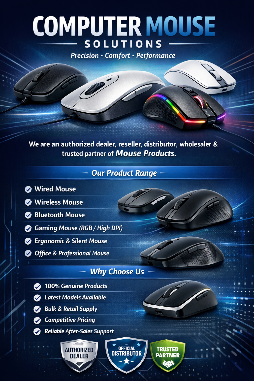 We deliver advanced Mouse solutions and professional Mouse systems across India as a Mouse authorized partner, Mouse dealer, Mouse distributor, Mouse reseller, Mouse wholesaler and Mouse system integrator, offering end-to-end Mouse supply, Mouse deployment, device standardization, configuration and Mouse commissioning for Central & State Government departments, PSUs, corporate offices, IT parks, healthcare organizations, data centers, conference rooms, schools, universities, hospitals, BPOs, call centers and Smart City IT infrastructure and digital workplace initiatives across Pan India.