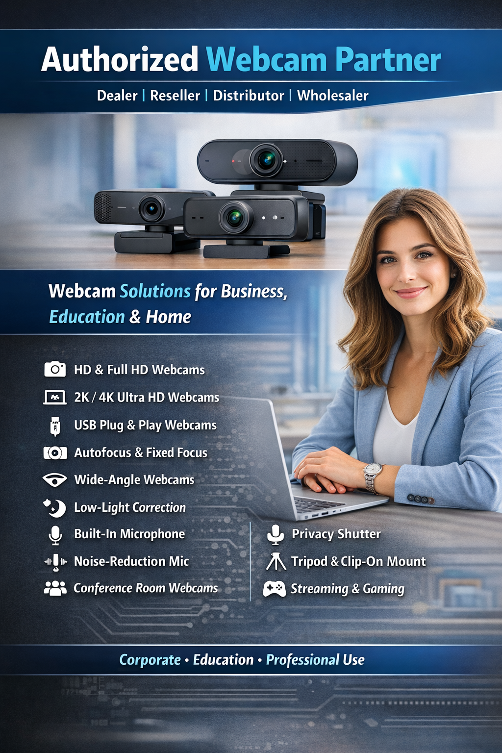 For corporate offices, Central & State Government departments, PSUs, boardrooms, banks, BPOs, call centers, auditoriums and digital workspaces across India, Sunlite Systems Pvt Ltd is a Webcam Authorized Partner, Webcam Authorized Dealer, Webcam Authorized Distributor, Webcam Reseller, Webcam Wholesaler, Webcam Supplier and GeM Registered Webcam Vendor in India, delivering advanced webcam solutions, professional webcams, video conferencing systems, enterprise collaboration platforms and digital workspace video communication solutions that enable high productivity, crystal-clear video quality, secure communication, centralized camera management, scalability and clutter-free professional webcam environments across Pan India.